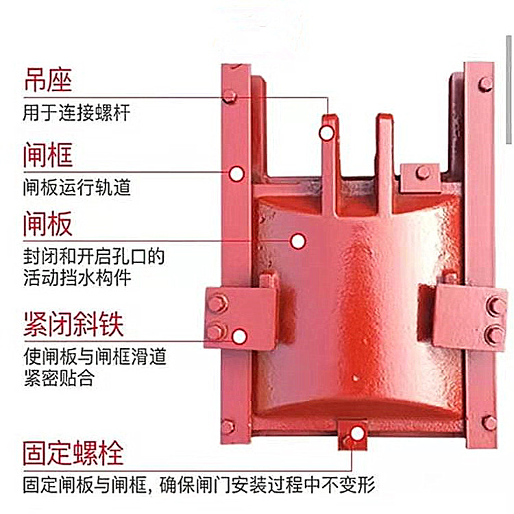 鑄鐵閘門(mén)的止水副采用整體加工,止水效果好,金屬止水使用壽命長(zhǎng)。