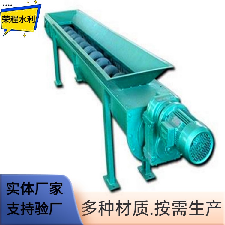 螺旋輸送機(jī)旋轉(zhuǎn)軸上焊有螺旋葉片,葉片的面型根據(jù)輸送物料的不同有實(shí)體面型、帶式面型、葉片面型等型式。螺旋輸送機(jī)的螺旋軸在物料運(yùn)動(dòng)方向的終端有止推軸承以隨物料給螺旋的軸向反力,在機(jī)長(zhǎng)較長(zhǎng)時(shí),應(yīng)加中間吊掛軸承。